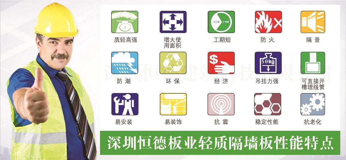 恒德板業(yè)100MM聚苯顆粒輕質(zhì)復合隔墻板的特點: