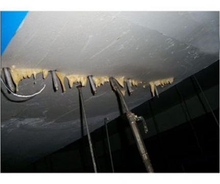 油性聚氨酯注漿材料與水即反應,由于水參與了反應,漿液不會被水稀釋沖走,這是其他灌漿材料所不具備的優(yōu)點,漿液在壓力作用下,灌入混凝土縫隙或孔洞,同時向縫隙周圍滲透,繼續(xù)滲入混凝土縫隙,最終形成網(wǎng)狀結(jié)構(gòu),成為密度小,含水的彈性體,有良好的適應變型能力,止水性好。
